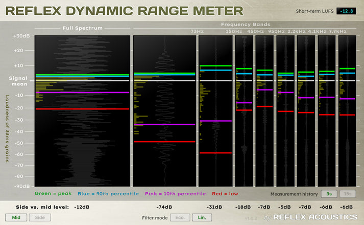 Reflex Acoustics has released Reflex Dynamic Range Meter, a plugin that helps to visualize dynamic range across the frequency spectrum.
